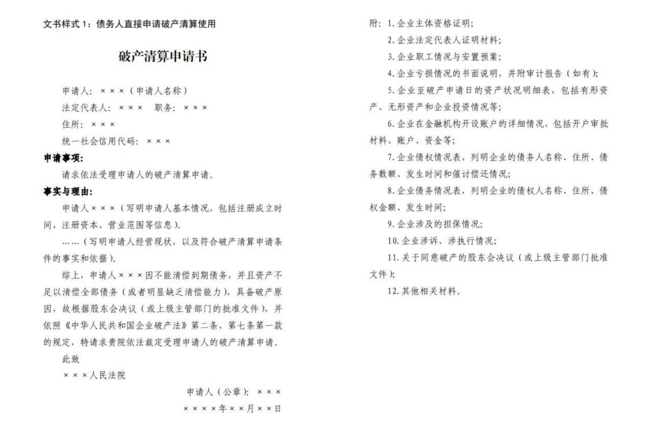 慶安縣人民法院向當(dāng)事人免費提供破產(chǎn)申請書格式文本