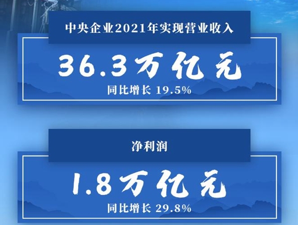 2021年中央企業(yè)實(shí)現(xiàn)凈利潤1.8萬億元 同比增長29.8%