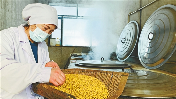 漫長的歲月,手藝人不斷積累經(jīng)驗,對豆子在發(fā)酵過程中不斷變化的溫度、色澤、香氣等有了直覺判斷,才讓胡曉華的手工大醬保存了讓人認可的老味道。經(jīng)常有人慕名找她咨詢,“我家大醬為啥不發(fā)酵?”“大醬酸了咋辦?”……她都一一耐心地解答。