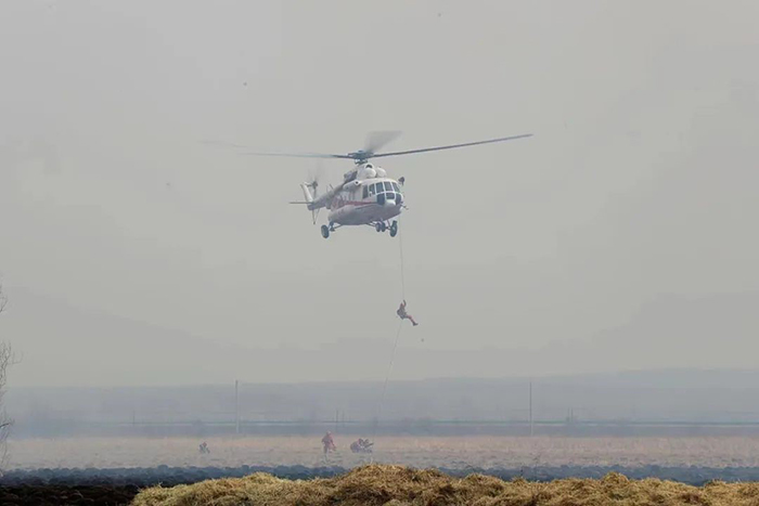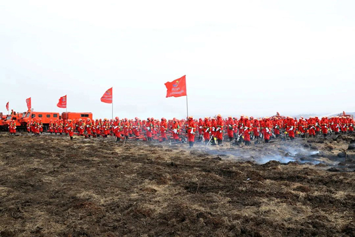 上午11時許,演練指令正式下達,信號彈騰空而起,一場以管護區(qū)內(nèi)某重點林區(qū)發(fā)生火災為演練背景的撲火戰(zhàn)斗全面打響。隨著一道道命令的下達,各參演單位指戰(zhàn)員迅速行動,按照林火監(jiān)測和火情報告、接警處置和啟動預案、組織兵力投送、組織指揮滅火行動等工作流程,有序組織開展演練。演練中,撲火隊伍結合火場態(tài)勢,科學選用兩翼對進、鉗形夾擊,多點突破、分段圍殲等戰(zhàn)法,重點演練了無人機滅火、直升機空中作業(yè)、常規(guī)滅火、大型裝備滅火等內(nèi)容。來自市森林消防支隊、應急航空救援伊春站、市應急救援支隊、市消防救援支隊,烏伊嶺、湯旺河、新青、紅星、五營、上甘嶺、友好、翠巒、美溪林業(yè)局公司撲滅火大隊,新青林業(yè)局公司紅林、湯林林場分公司快速撲滅火小隊和民兵預備隊等單位,共計800余人參加演練。