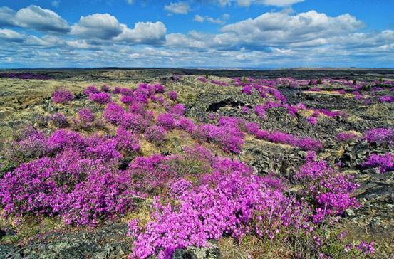 另一獨具北國風(fēng)光特色的是“興安杜鵑”,又稱“映山紅”“達子香”“達達香”,粉紅色的花朵與純白色的雪山是黑龍江高山叢林之間的春季奇景。其中,在牡丹江鏡泊湖景區(qū)及周邊熔巖臺地盛開的杜鵑花,林在石上、石在花中、花在石上,石海、花海、林海形成罕見的自然奇觀。此外,齊齊哈爾龍江縣的杜鵑山景區(qū)、以興安杜鵑為市花的伊春小興安嶺、雙鴨山的大頂子山、黑河的錦河大峽谷、大興安嶺的百泉谷生態(tài)旅游風(fēng)景區(qū)等地,都可以探尋到興安杜鵑的芳蹤。