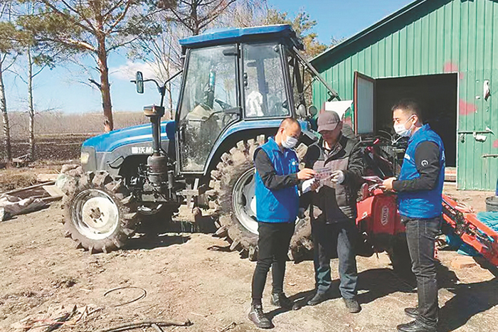 佳木斯聯(lián)通工作人員在七星農(nóng)場(chǎng)了解農(nóng)民通信需求。由受訪者提供