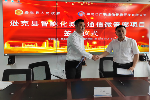 黑龍江經(jīng)濟(jì)網(wǎng)訊(黑龍江日?qǐng)?bào)全媒體見習(xí)記者商祺)6月12日,黑龍江廣聯(lián)通信管廊開發(fā)有限公司與遜克縣人民政府在哈爾濱市常青大廈舉行遜克縣智能化城鄉(xiāng)通信微管廊項(xiàng)目簽約儀式。