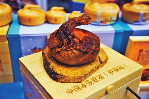 此次,美江木藝有限責(zé)任公司共展出了100余件產(chǎn)品,其中,最引人注目的瑞虎冰壺,由美江木藝公司為2022中國冰壺聯(lián)賽(伊春站)主題創(chuàng)作,最大直徑1.8米,總高度1.6米。主體壺身采用2022個小興安嶺山核桃做原料,壺蓋部分采用小興安嶺珍貴樹種紅松。作品構(gòu)思巧妙、用材獨(dú)特,既契合本次冰壺聯(lián)賽內(nèi)容,又充分體現(xiàn)了林都伊春、冰壺之鄉(xiāng)的地域特征。構(gòu)成壺身的2022個山核桃,寓意著2022年河山錦繡的小興安嶺,構(gòu)成壺蓋的興安紅松,蘊(yùn)含著華夏文明“鴻運(yùn)當(dāng)頭”的美好期許。此藝術(shù)品既體現(xiàn)伊春的森林文化藝術(shù)與競技體育相融合的發(fā)展理念,也展現(xiàn)了伊春的冰雪經(jīng)濟(jì)和木藝創(chuàng)意設(shè)計(jì)產(chǎn)業(yè)的發(fā)展成果。