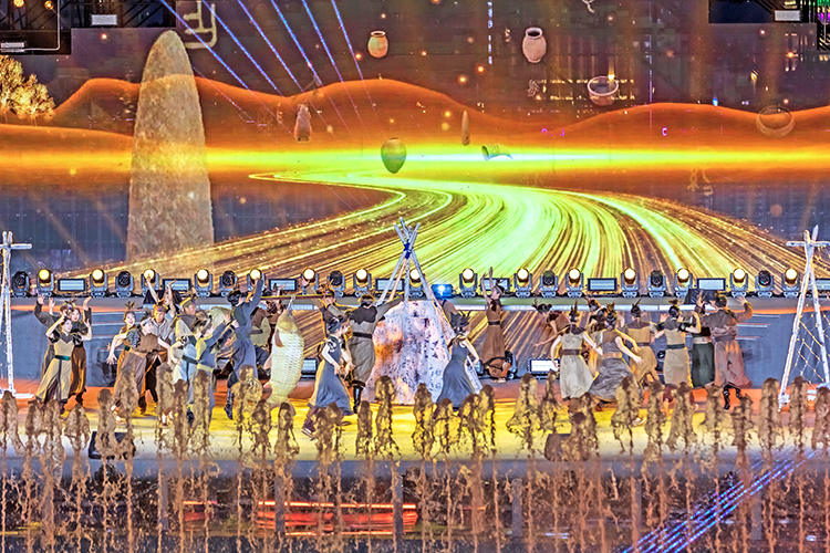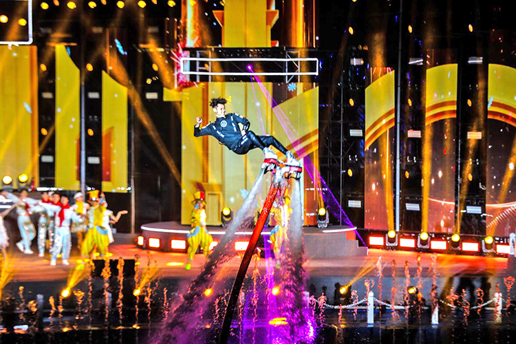 夜幕降臨,松花江江面瞬間化作光影的畫布。彩排現(xiàn)場,水幕、噴泉、激光秀、無人機(jī)等特效輪番登場,交相輝映;光影與旋律交織,歷史故事通過鮮活的影像在觀眾眼前徐徐展開。演員們精湛的表演,配合著“人、聲、光、水、電、影、景”的深度融合,讓整個(gè)演出現(xiàn)場充滿了震撼力與感染力。