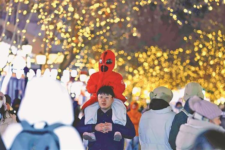 夜幕降臨,哈爾濱市中央大街悄然披上了一襲由光影精心織就的夢幻霓裳。流光溢彩的燈光,細(xì)細(xì)勾勒著獨(dú)特建筑的穹頂輪廓。游客不同方言的贊嘆聲此起彼伏,交織在浪漫的氛圍中,共同奏響一曲迎接新春的歡快樂章。