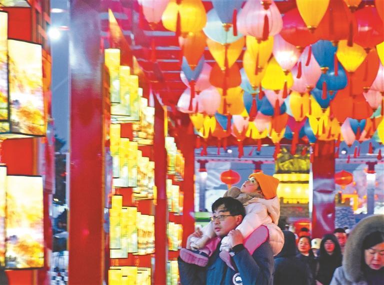臨近春節(jié),哈爾濱市道里區(qū)松花江畔,一組以“大美龍江·非遺季”為主題的彩燈點(diǎn)亮,吸引許多游客駐足觀看、拍照。現(xiàn)場(chǎng)懸掛的近千盞彩燈有多種顏色,烘托出濃濃的喜慶氣氛。彩燈扮靚了江畔,也為冰城再添一處美景。