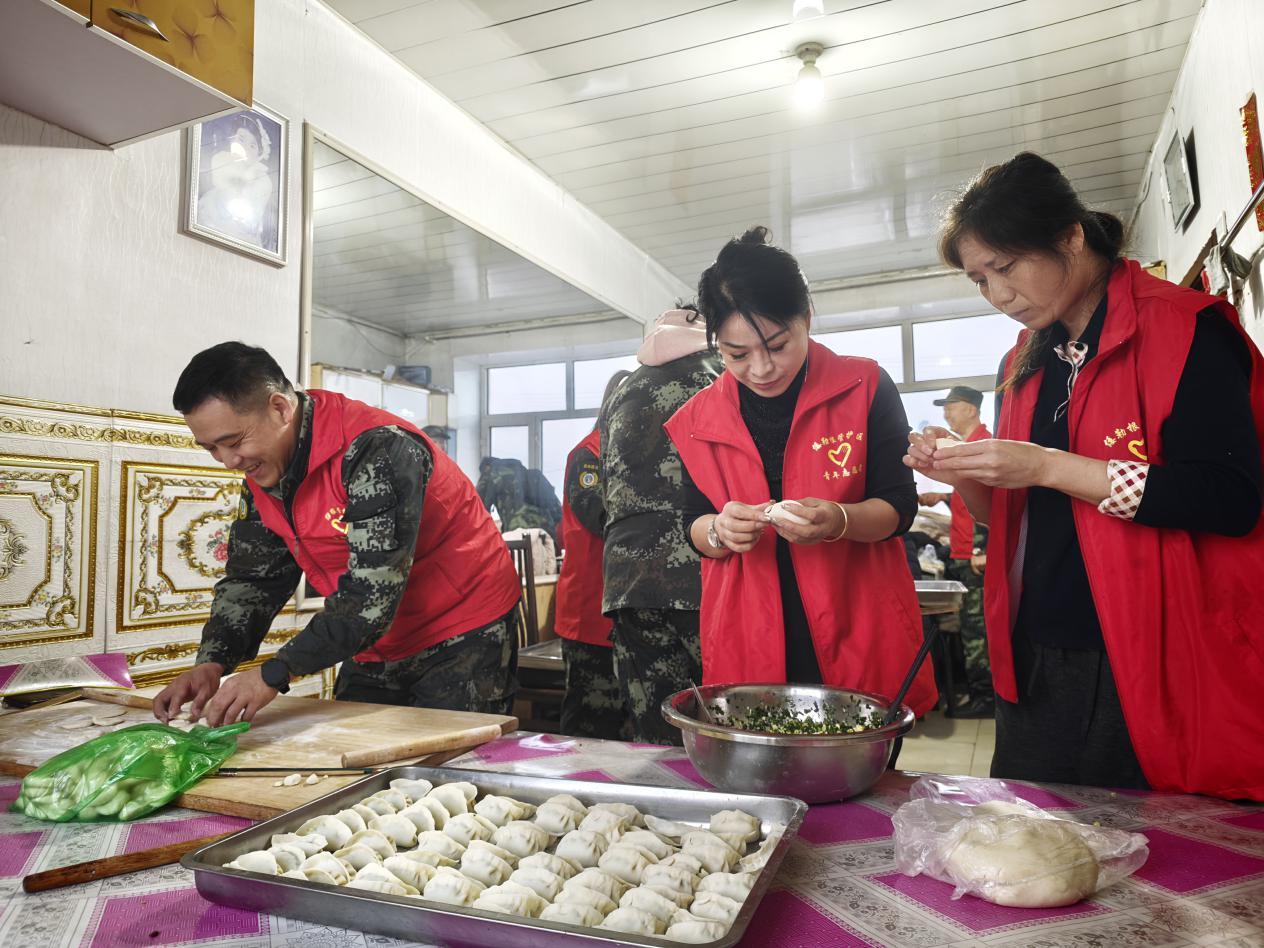 清明節(jié)當(dāng)日,凌晨五點,天微亮,林場的機關(guān)干部、后勤人員在食堂分工協(xié)作、默契配合,和面、搟皮、調(diào)餡、包餃子,各個環(huán)節(jié)有條不紊,將對一線職工的牽掛與敬意,包進一個個飽滿的餃子里。經(jīng)過兩個多小時的忙碌,一鍋鍋熱氣騰騰的餃子新鮮出鍋,大家迅速將餃子分裝打包,馬不停蹄奔赴林場各森防布控卡口。